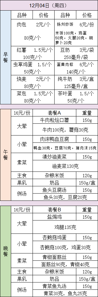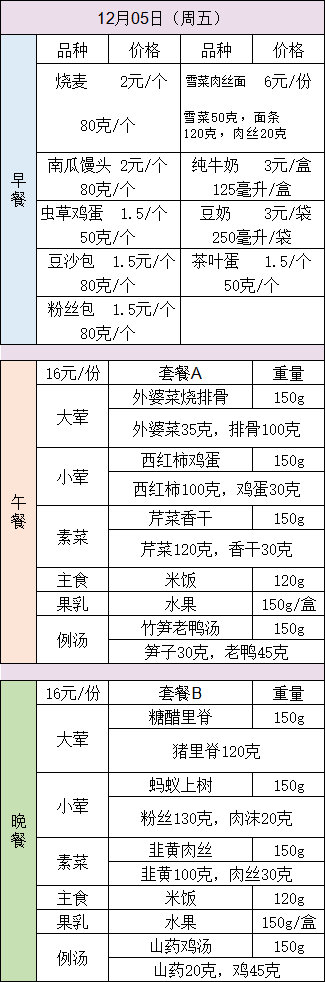 25-26学年第一学期第十四周菜谱