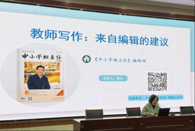 为助力教师破解论文写作难题,提升教科研能力,12月3日,南京市中华中学附属初级中学特邀《中小学班主任》编辑部副主任、特约编辑曹卉老师,开展以“教师写作:来自编辑的建议”为主题的专题讲座。本次讲座由教研处张兵主任主持,全体教师积极参与学习。