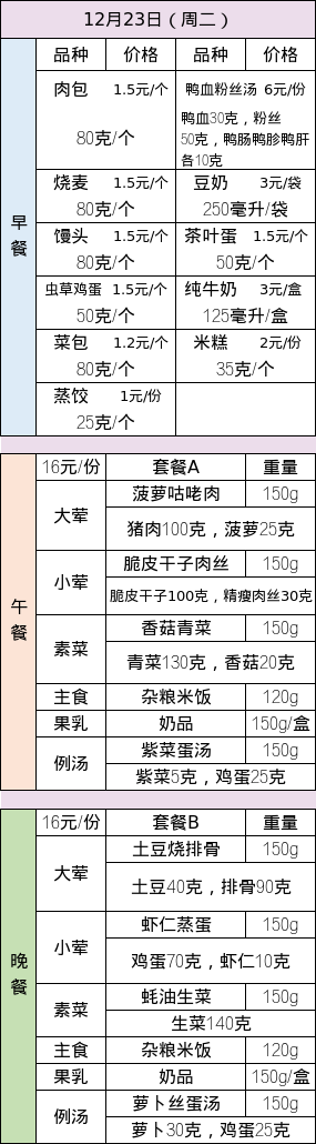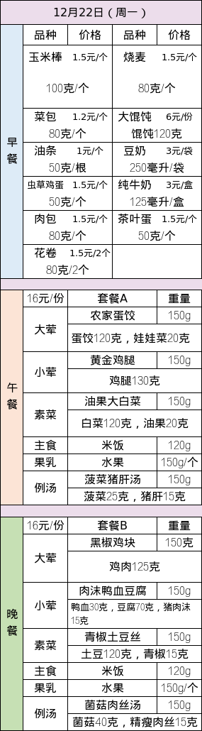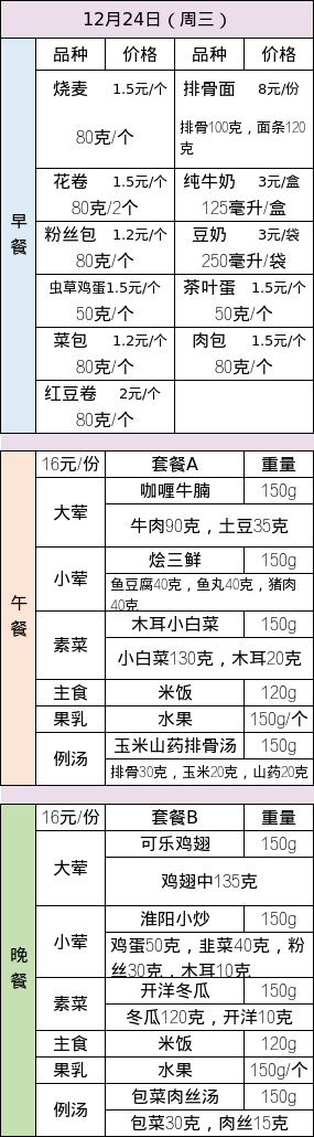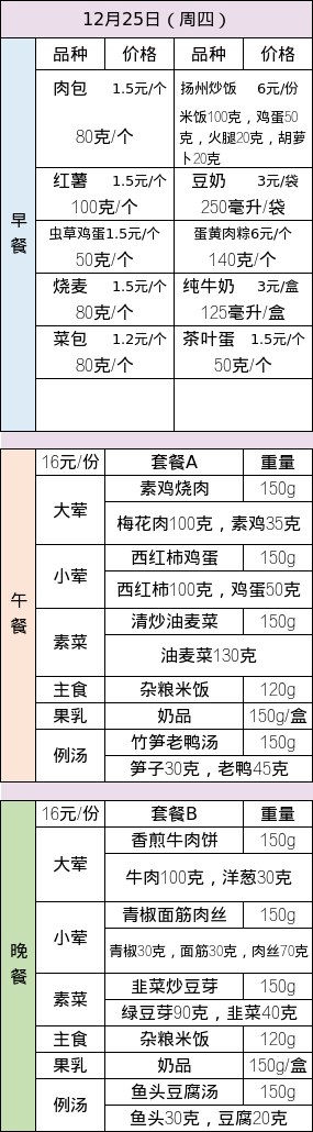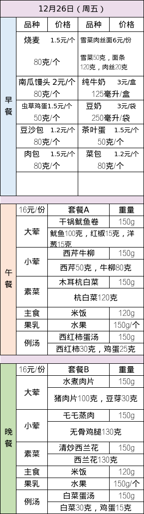 · 25-26学年第一学期第十六周菜谱